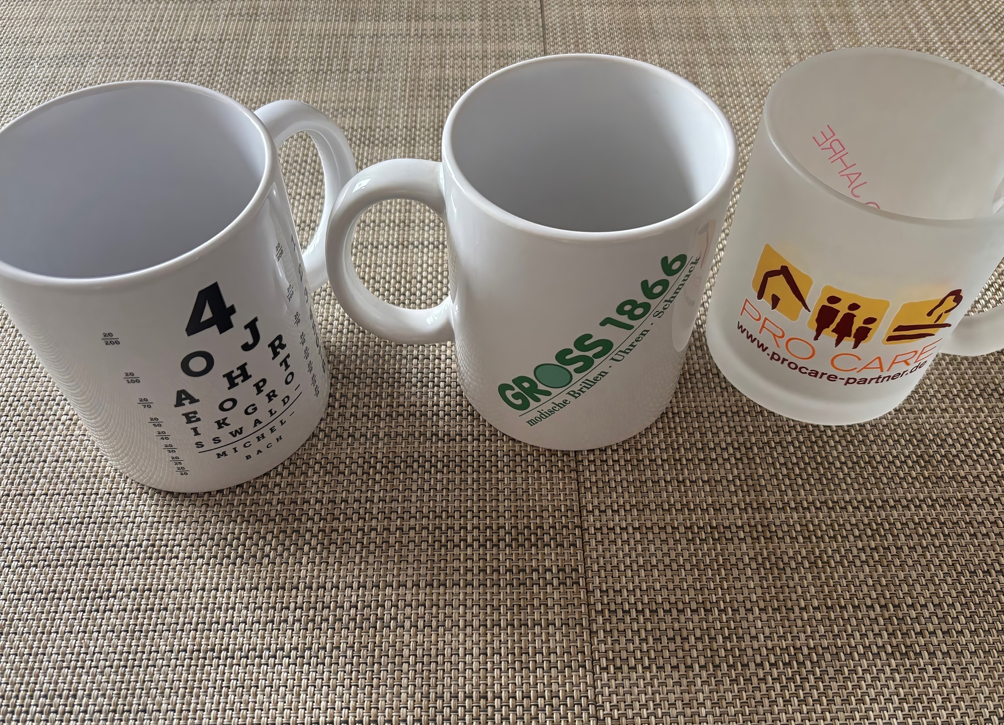 Personalisierte Kundengeschenke wie z.B. Tassen, Kugelschreiber, Mappen oder Deckel für Trinkgläser sind immer wieder gelungene Werbemittel, um im Blickfeld zu bleiben und so eine längerfristige Kundenbindung zu erzeugen.